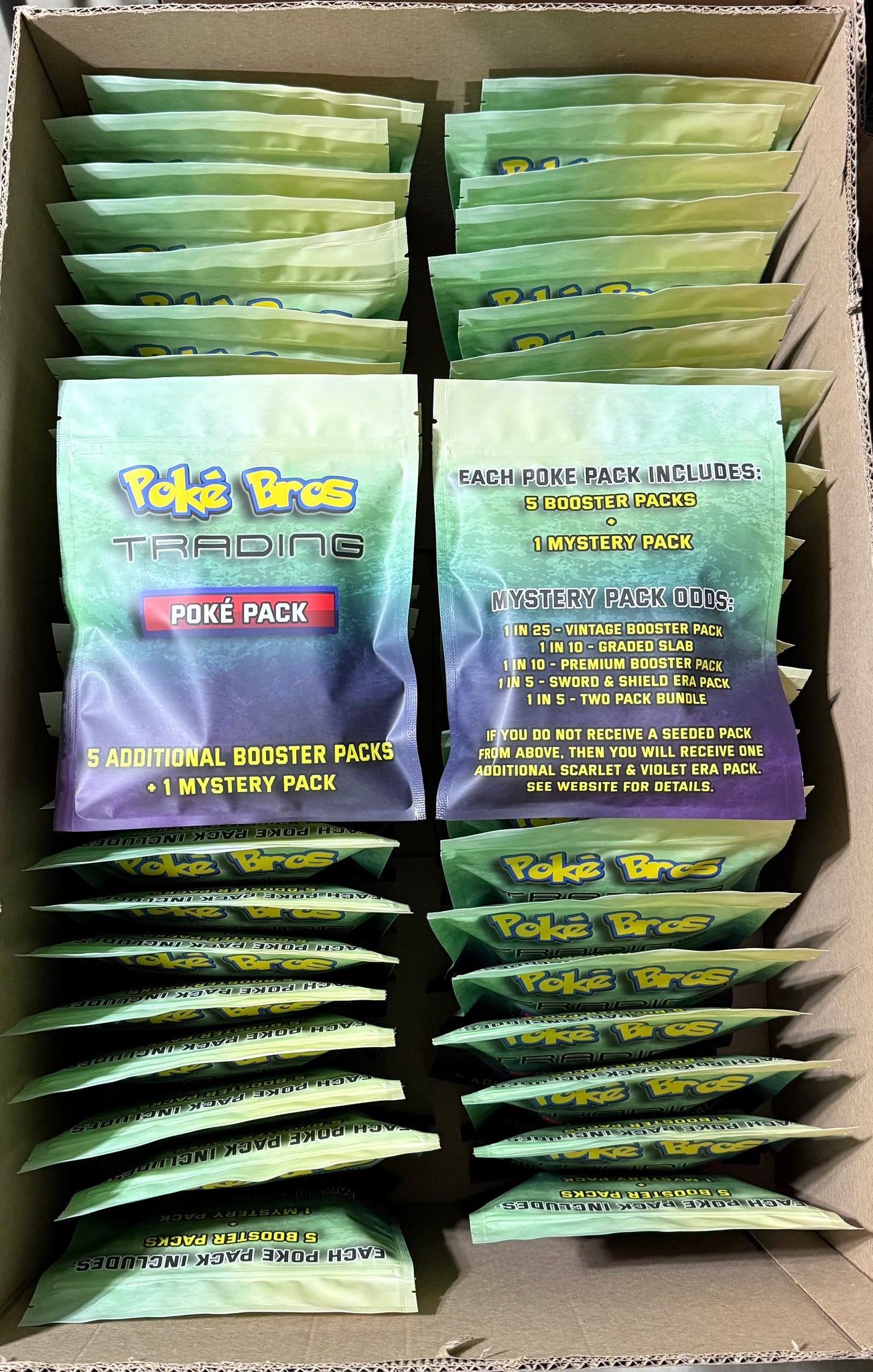 All Poké Packs are pre-packaged, meaning every pack is purchased at random.  The estimated average value of each Poké Pack is $55.00. All booster packs are listed at market value and vary in availability. If there is an issue or concern regarding Poké Packs please contact us!