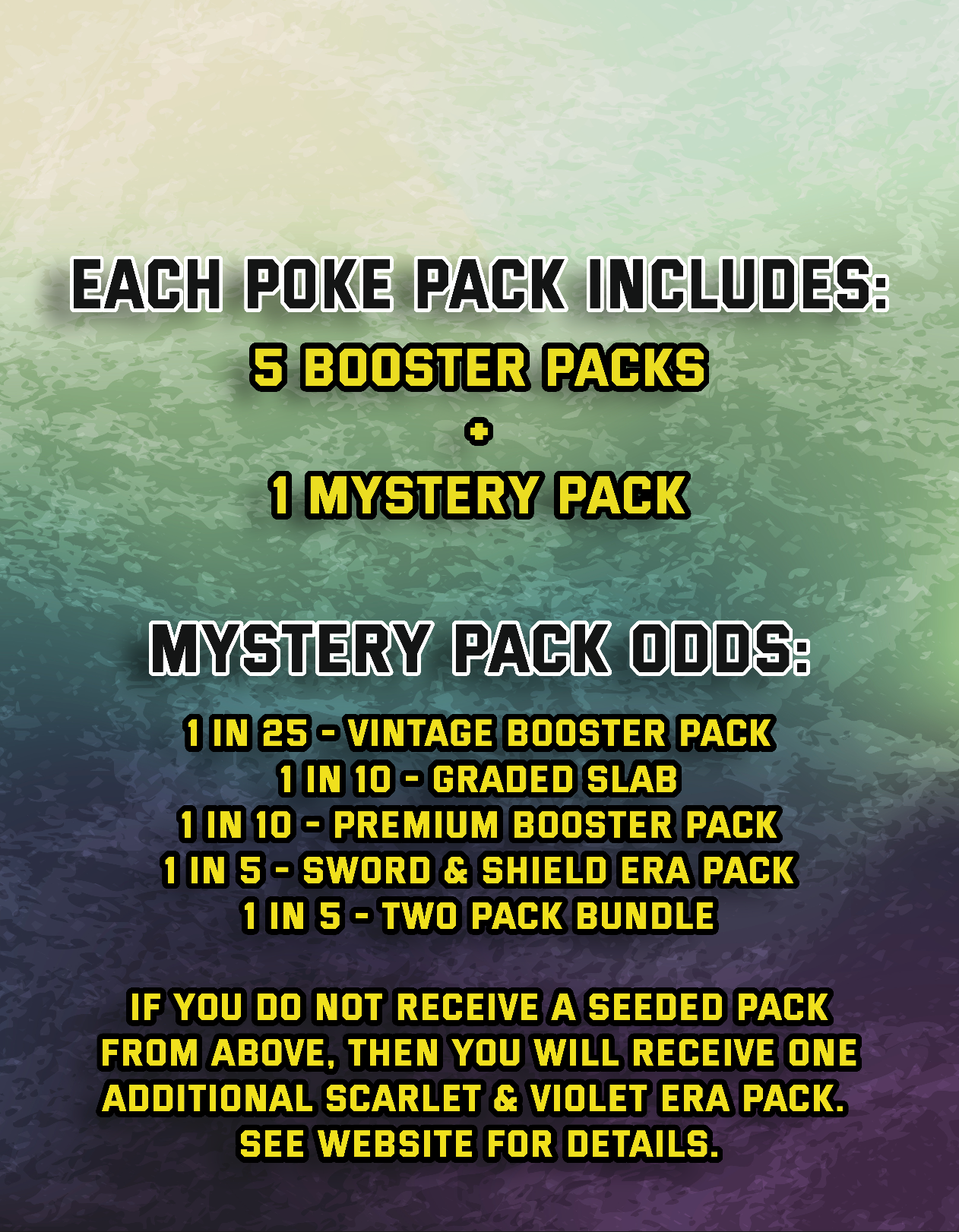 Each Poke Pack will contain a Mystery Pack (Gold Pack or Black Pack). If your Mystery Pack does not contain one of the above options, you will receive an additional Scarlet & Violet Era pack.